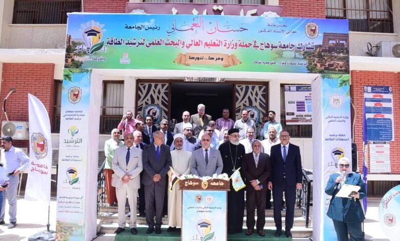 جامعة سوهاج والقيادات المدنية بالمحافظة يرفعون شعار “وفرها.. تنورها” لدعم جهود الدولة فى ترشيد استهلاك الكهرباء