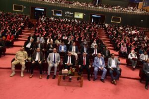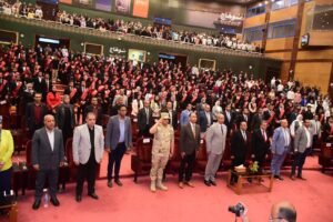 فعاليات الندوة التثقيفية التوعوية “الأمن القومي المصري تحديات الماضي والحاضر”، والتي نظمتها جامعة سوهاج تزامنًا مع ذكري تحرير سيناء، والتي حاضر بها اللواء أركان حرب الدكتور محمود خليفة مستشار الأمين العام لجامعة الدول العربية للشئون السياسية ومحافظ الوادي الجديد الأسبق، بحضور العميد وائل أبوالقاسم المستشار العسكري للمحافظة، الدكتور خالد عمران نائب رئيس الجامعة لشئون خدمة المجتمع وتنمية البيئة، الدكتور حسين طه نائب رئيس الجامعة لشئون التعليم والطلاب، الدكتورة صباح صابر الأستاذ بكلية العلوم وعضو مجلس النواب، اللواء طارق حافظ مدير عام إدارة الأمن الجامعي، العقيد محمد همام مدير التربية العسكرية ولفيف من عمداء الكليات ووكلائها وأعضاء هيئة التدريس والطلاب ، وذلك بقاعة قناة السويس بالمركز الدولي للمؤتمرات بمقر الجامعة الجديد.