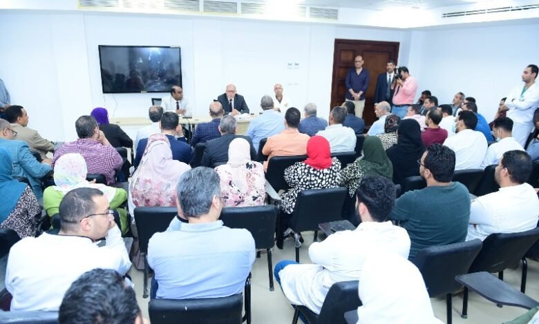وأثناء اللقاء استمع الدكتور حسان النعماني، لمقترحات واحتياجات الأطقم الطبية لتطوير وتحسين الأداء داخل المستشفى، موضحاً حرص إدارة الجامعة على تحسين خدماتها الطبية المقدمة بمستشفياتها الجامعية كافة في مختلف التخصصات الطبية، والاستمرار فى بذل المزيد من الجهد للقيام برسالتها الإنسانية العظيمة.