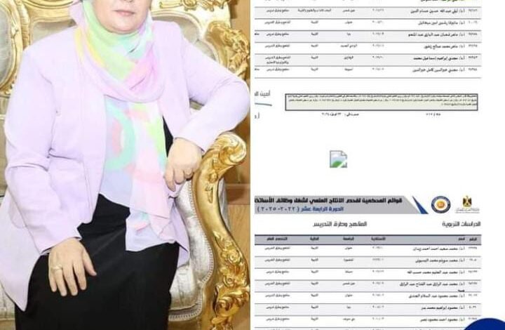 خالص التهاني والتبريكات مقدمة من موقع شباب الفكر للأستاذة الدكتورة لمياء شعبان أبو زيد عميد كلية التربية النوعية وذلك لتجديد الثقة بانضمامها إلى لجنة المحكمين لتحكيم بحوث الترقيات العلمية للأساتذة والأساتذة المساعدين في مجال المناهج وطرق التدريس للمرة الثانية على التوالي، وموقع شباب الفكر ينتهز هذه الفرصة لتهنئتها مع أمنياتنا لها بالتوفيق والسداد ومزيد من التالق والرقي علمياً وإدارياً.