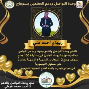 في إطار الاحتفال باليوم العالمي للمعلم، وحرص وزارة التربية والتعليم على إلقاء الضوء على النماذج المتميزة من المعلمين في مجالات الإبداع والابتكار لخدمة العملية التعليمية، نجحت مديرية التربية والتعليم بسوهاج تحت رعاية السيد محمد عبد اللطيف وزير التربية والتعليم والتعليم الفني، واللواء الدكتور عبد الفتاح سراج الدين محافظ سوهاج، والدكتور محمد السيد وكيل وزارة التربية والتعليم بسوهاج، في تحقيق إنجاز جديد واقتناص خمسة مراكز على مستوى الجمهورية في مسابقة (100 معلم متمكن مبدع)، التي تنظمها الإدارة العامة للتواصل ودعم المعلمين بالوزارة للعام الثاني على التوالي، والتي تمكنت خلالها المديرية من الفوز بمركزين في العام الماضي.