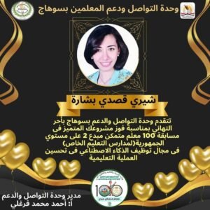 وفي نفس السياق، تم تكريم الأستاذة شيري قصدي، المعلمة بمدرسة الأقباط الكاثوليك بقرية النُّجيلة بإدارة المنشأة التعليمية، لتميزها في مجال تطبيقات الذكاء الاصطناعي في التعليم (تعليم خاص)، والأستاذة إسراء أحمد، المعلمة بمدرسة الأقباط الكاثوليك بقرية النُّجيلة بإدارة المنشأة التعليمية، لتميزها في مجال أبحاث حل المشكلات الدراسية (تعليم خاص).