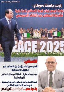 رئيس جامعة سوهاج: نبارك لمصر نجاح قمة السلام تحت راية قائدها الملهم عبد الفتاح السيسي