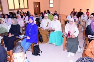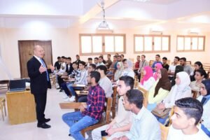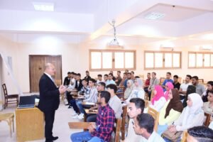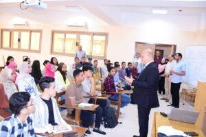 النعماني مع طلابه… وسط تفاعل وانضباط أكاديمي يملأ قاعات المحاضرات بجامعة سوهاج الأهلية”