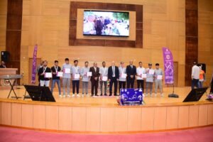 وفي بداية كلمته، وجه الدكتور حسان النعماني، خالص الشكر والتقدير لفخامة الرئيس عبد الفتاح السيسى رئيس الجمهورية، لتوليه اهتمام كبير بملف ذوي الإعاقة، وحرصه على إصدار القوانين والتشريعات التي تضمن حصول تلك الفئة على كامل حقوقها، إلى جانب توفير كافة الخدمات التسهيلات التي تساهم في تأمين حياة كريمة لهم، وتأكيده المستمر على ضرورة دمج وتمكين كافة الطلاب بالجامعات المصرية بمختلف الفعاليات والأنشطة الطلابية والمجتمعية، وابراز الموهوبين والمتميزين منهم، حيث تحرص إدارة الجامعة على تسليط الضوء بشكل مستمر على النماذج المضيئة من ذوي الهمم، واكتشاف طاقاتهم واستغلال قدراتهم وتشجيعهم على الابتكار والإبداع لتحفيز غيرهم من الطلاب على التفوق والنجاح، وإثبات تواجدهم في المجتمع باعتبارهم جزء لا يتجرأ منه، فهم شركاء فاعلون في مسيرة التنمية، وأن تمكينهم ودمجهم ليس مجرد واجب إنساني، بل ضرورة لتحقيق مجتمع متماسك ونهضة شاملة، بما يكفل حقوقهم ويعزز مساهمتهم في جميع المجالات.