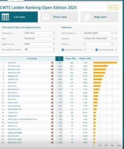 ومن جانبه، أوضح الدكتور عمرو عبد الحميد مدير مركز النشر العلمي بالجامعة، أن تصنيف ليدن الهولندي يعد أحد أبرز التصنيفات العالمية المعنية بتقييم الأداء البحثي للمؤسسات الأكاديمية، ويصدر عن مركز دراسات العلوم والتكنولوجيا بجامعة ليدن في هولندا. ويعتمد التصنيف على مجموعة من المؤشرات الببليومترية التي تركز على جودة الأبحاث وتأثيرها، ومن بينها عدد المنشورات، ونسب الاستشهاد العلمي بها، ومعدلات التعاون البحثي الدولي، ونسبة الأبحاث المنشورة بنظام الوصول الحر (Open Access)، بالإضافة إلى مؤشرات تتعلق بتنوع الباحثين وتوازن بيئة البحث العلمي داخل الجامعة..