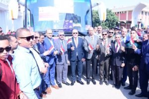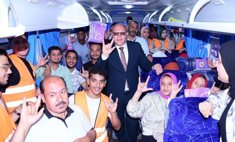 رئيس جامعة سوهاج وسط طلابه من ذوى الإعاقة بالاتوبيسات المخصصة لنقلهم للمقرات الانتخابية