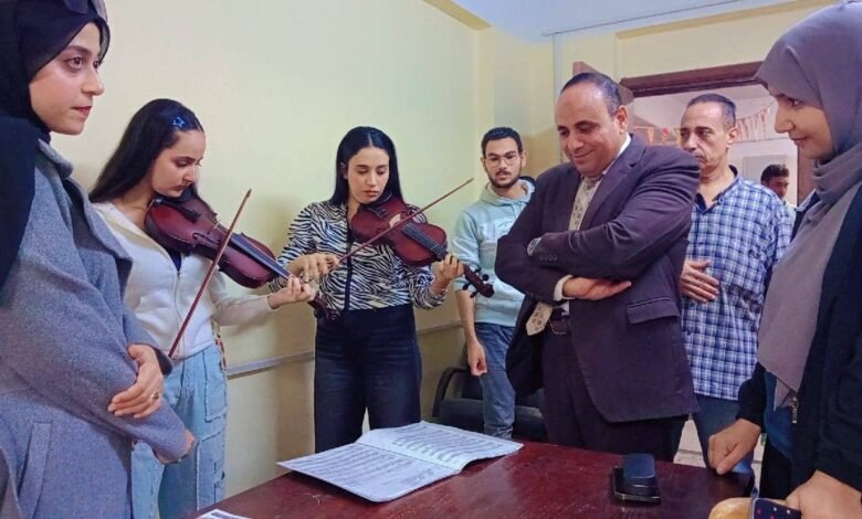 كما شملت الجولة التفقدية معامل قسم التربية الموسيقية، حيث تابع الحصص العملية للتدريب على الآلات الموسيقية المختلفة، واستمع إلى نماذج من أداء الطلاب، مشيدًا بمستوى التأهيل الموسيقي داخل القسم ودور أعضاء هيئة التدريس في تنمية المواهب الموسيقية لدى الطلاب، كما أكد أهمية دمج التكنولوجيا الحديثة في التعليم الموسيقي بما يتوافق مع الاتجاهات العالمية في هذا المجال.