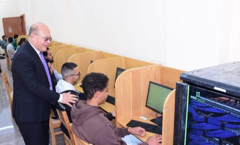 تفقد الدكتور حسان النعماني رئيس جامعة سوهاج امتحانات الفصل الدراسي الأول للعام الجامعي ٢٠٢٥-٢٠٢٦ بمركز الاختبارات الإلكترونية “الجديد”، والذي يضم ٥٠٠٠ الاف جهاز حاسب آلي علي أعلى مستوي، وذلك بالمقر الجديد للجامعة.