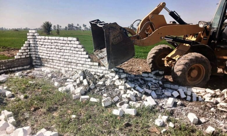 وشدد ” سراج ” على المرور والمتابعة المستمرة وتنفيذ قرارات الإزالة بكل حزم واتخاذ الإجراءات القانونية اللازمة، والإحالة إلى النيابة المختصة، والتصدي بكل حسم لأي شكل من أشكال التعديات على أملاك الدولة، والأراضي الزراعية، موجها بالتنسيق بين الوحدات المحلية ووحدة المتغيرات المكانية بالمحافظة لرصد أي تعديات وإزالتها في المهد، مشددا على أن تكون الإزالة حتى سطح الأرض.