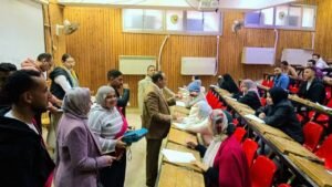 ختام ماراثون امتحانات كلية التربية النوعية بجامعة سوهاج في أجواء من البهجة… وعميد الكلية يقوم بتوزيع الشيكولاتة على الطلاب