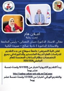 تمريض سوهاج تعلن استمرار التقديم الإلكتروني للدراسات العليا بجميع التخصصات بنظام الساعات المعتمدة